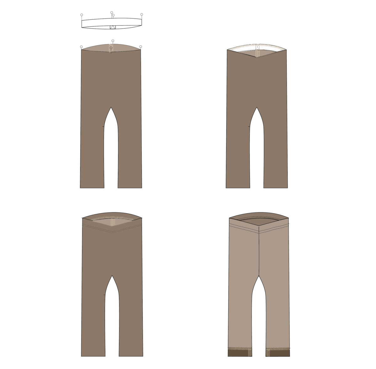 - Knip twee spiegelbeeldige broekspijpen uit.