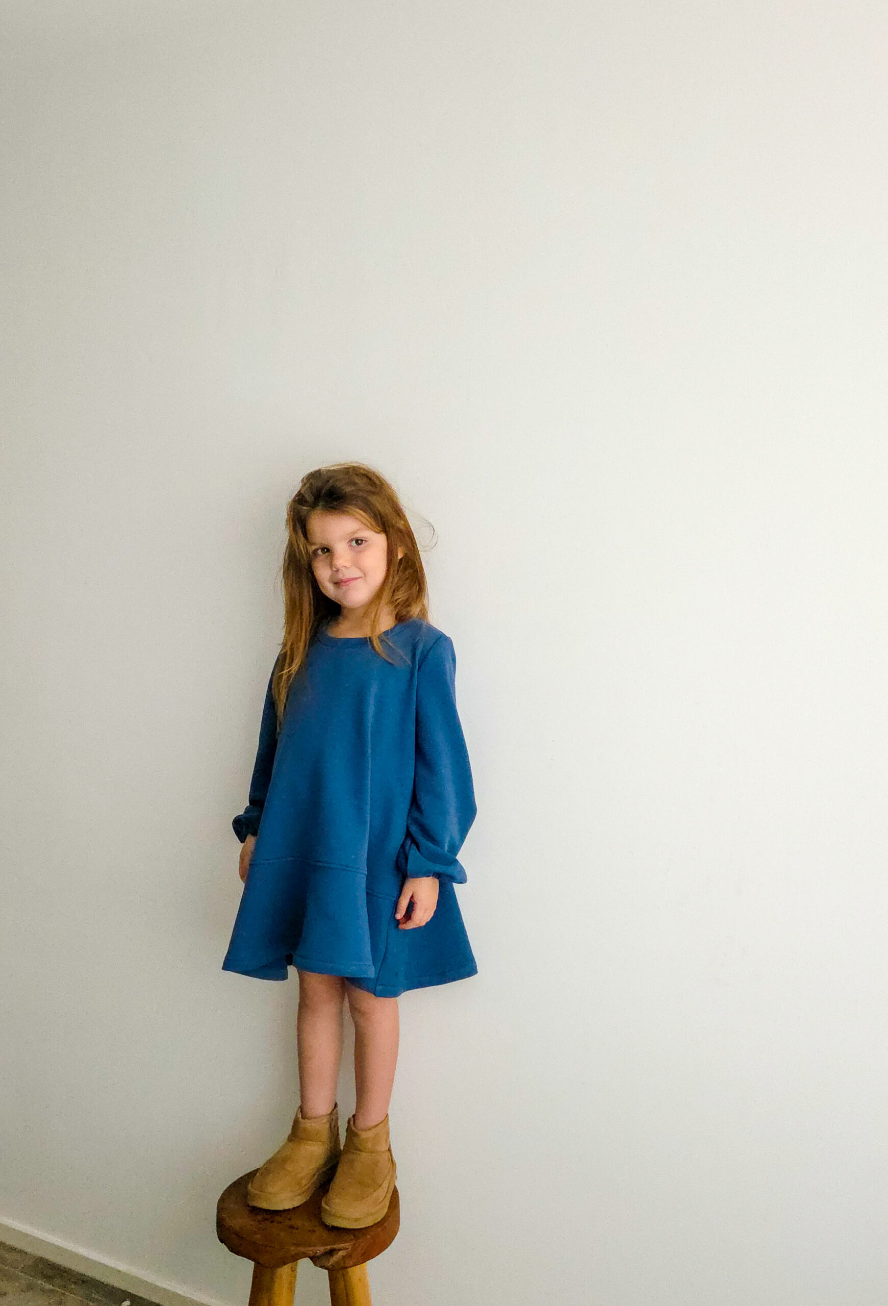 De Lou jurk is een tijdloos en comfortabel kindermodel, geschikt voor maat 92 t/m 152.