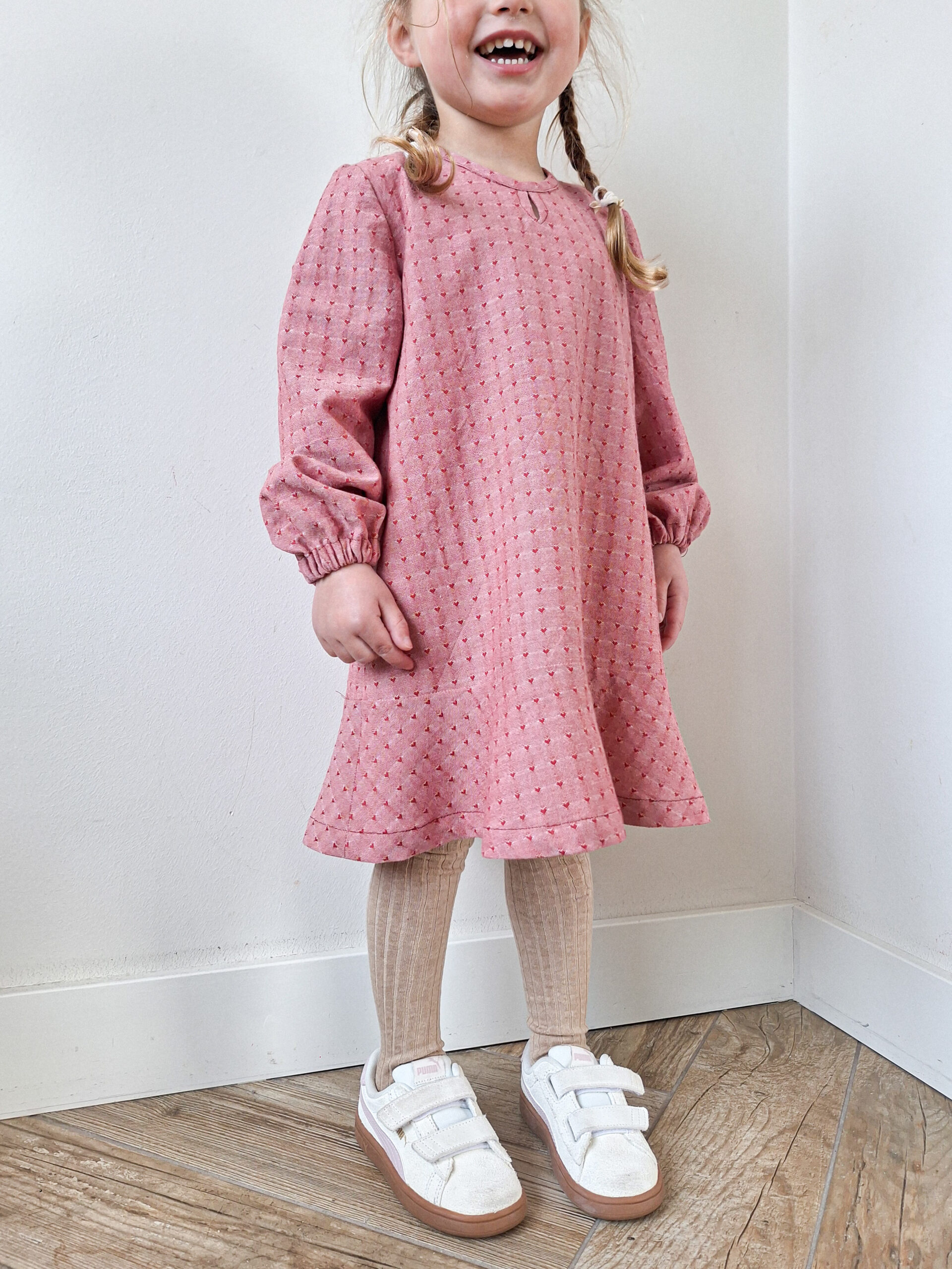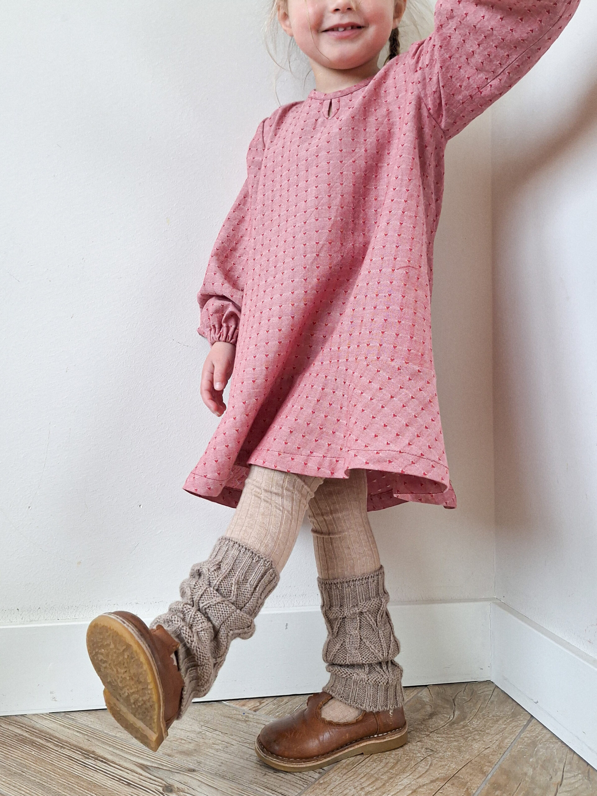 De A-LIjn pasvorm van de jurk en subtiele details maken Lou geschikt voor meerdere seizoenen en gelegenheden – van speelse dagen thuis tot feestjes en familiefoto’s.